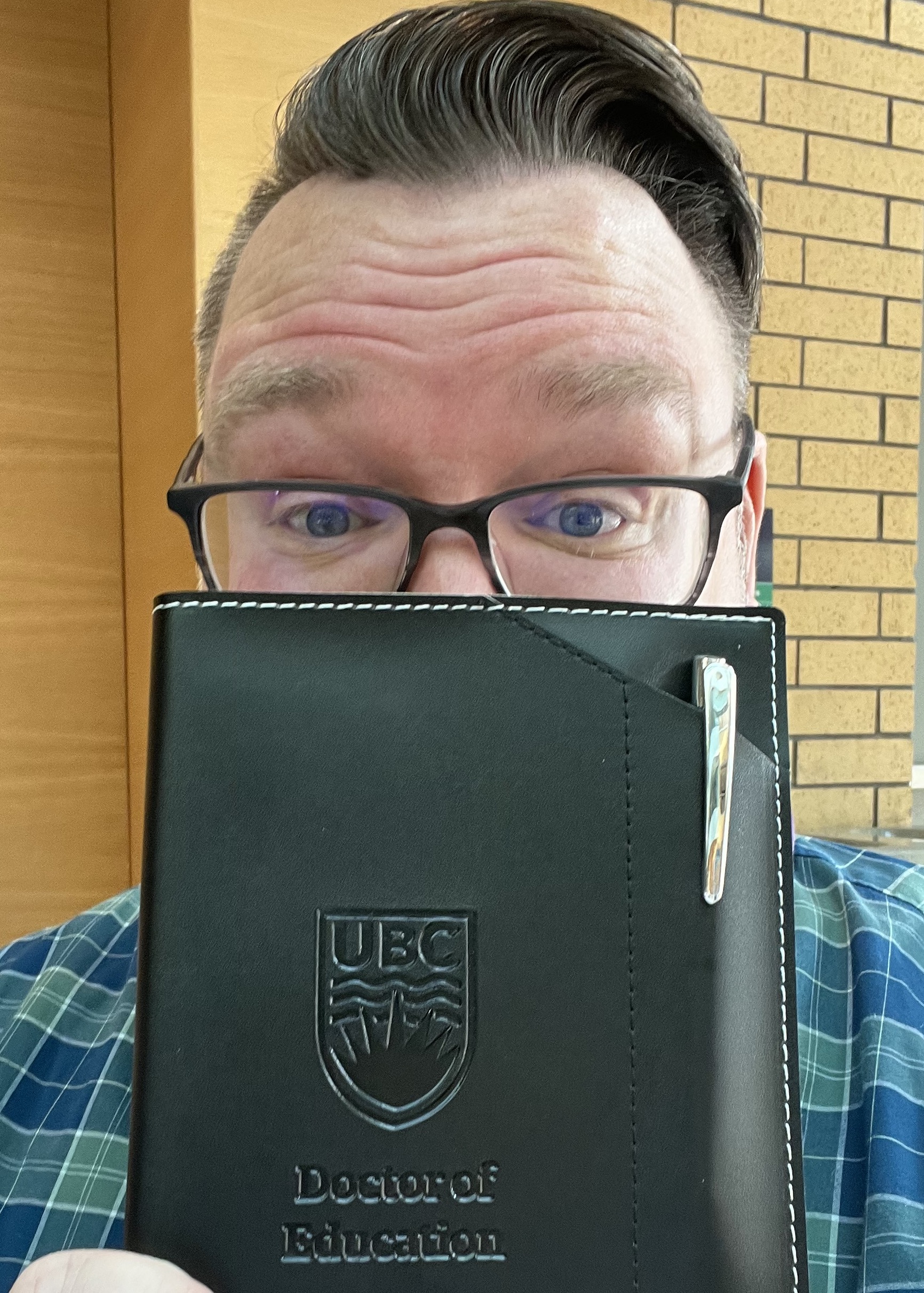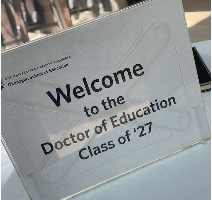 In the fall of 2023, a leap was taken, an application was submitted, and hope was launched. On February 13th a letter of acceptance was received and my doctorate journey began. This website/blog/repository of artifacts documents my reflective and reflexive journey. It is a personal story that documents becoming a scholar-practitioner. There are moments of self-critique, moments of frustration, and moments of clarity and joy as I learn to decolonize my mind, look deeply at my transformative leadership practices, and become a scholar-practitioner. The hope is to have a record of my journey and celebrate and interrogate the work and research along the way. The photo to the right is day 1 at the University of British Columbia Okanagan. The journal was a gift – I will not write in it until I become a doctor. My first reflection in this journal will be after I cross the stage. The journey is going to be challenge, hard, and so wonderful. (Please know this site may shift and change as I begin to look at new ways to document. Please also note, I still need to seek permission to use the photos of people in our cohort. This is not public because of this.)